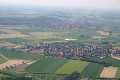 Anflug auf Weetzen von Osten, hinten Gehrden und der Gehrdener Berg